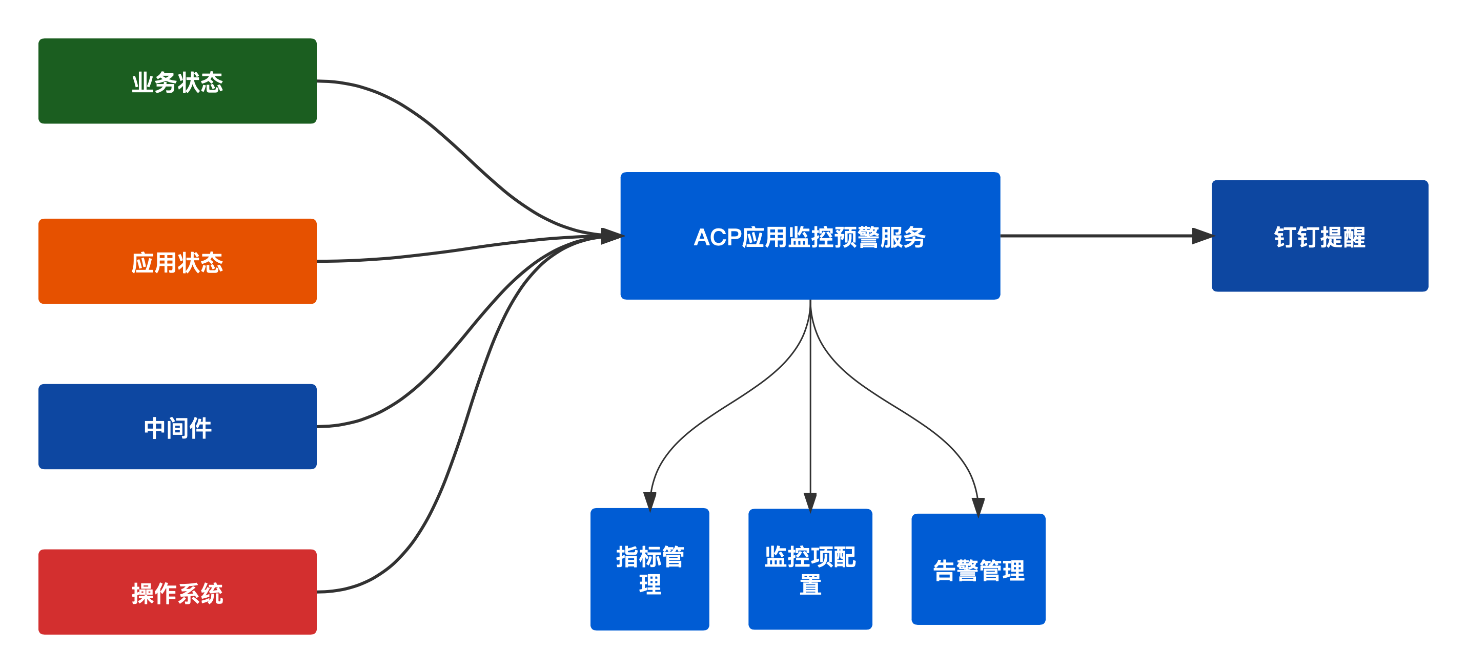 應用監控預警是集成從基礎環境、中間件、應用狀態、業務狀態集成的監控預警平臺,統一的可視化的監控端接入, 收集監控指標,與IM工具集成監控預警,便于人員了解運行狀態,任務狀態,運行情況。